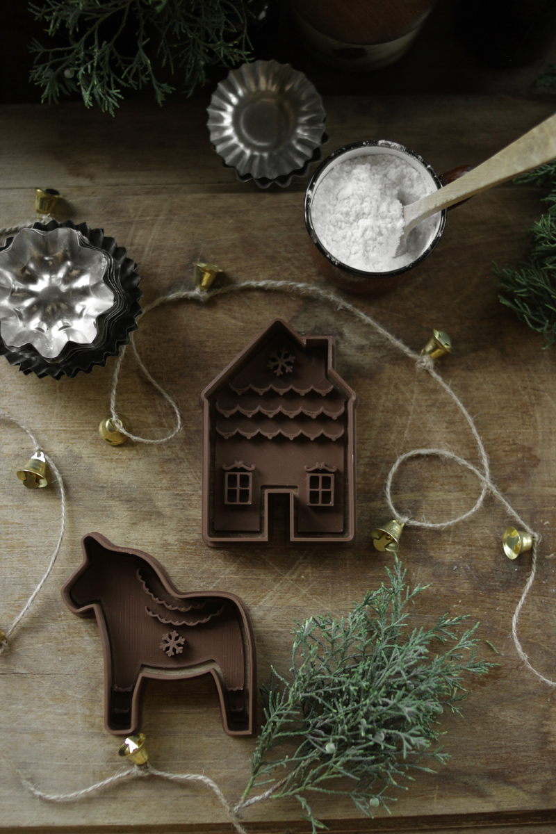 Cortantes de galletas con sello marcador. El set se compone de 4 piezas: 2 cortantes y 2 sellos marcadores con motivos de Dala Horse y Casita de Jengibre. Fáciles de usar y de limpiar. Con diseños originales de La Maison Naturaliste. Realizados en bio-plástico a base de almidones vegetales. Aptos para estar en contacto con alimentos. También podés usarlos para cerámica o porcelana. Todos los sets de cutters vienen con un e-book con recetas para hacer cookies tan ricas como hermosas ^_^